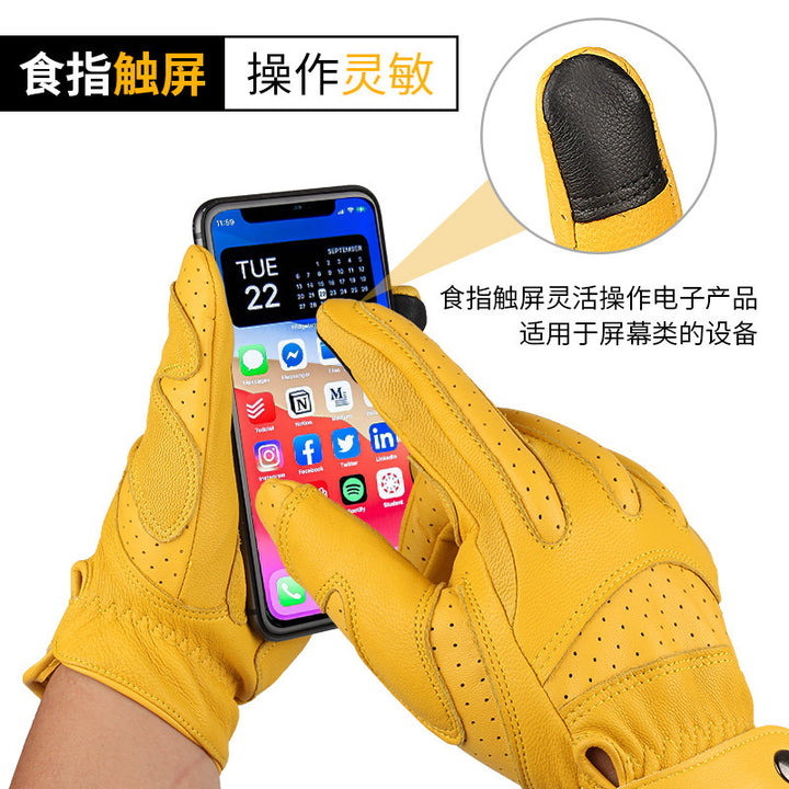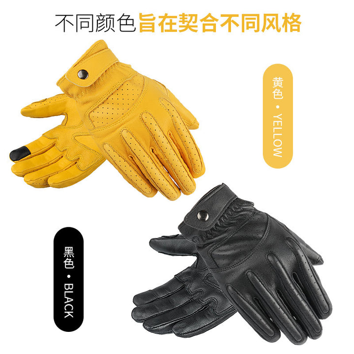 Spot 2025 Korean hot-selling sheepskin motorcycle gloves non-slip and wear-resistant outdoor off-road vehicle racing full-finger gloves