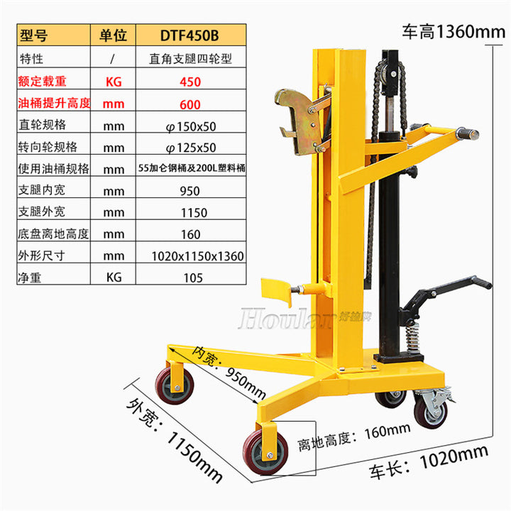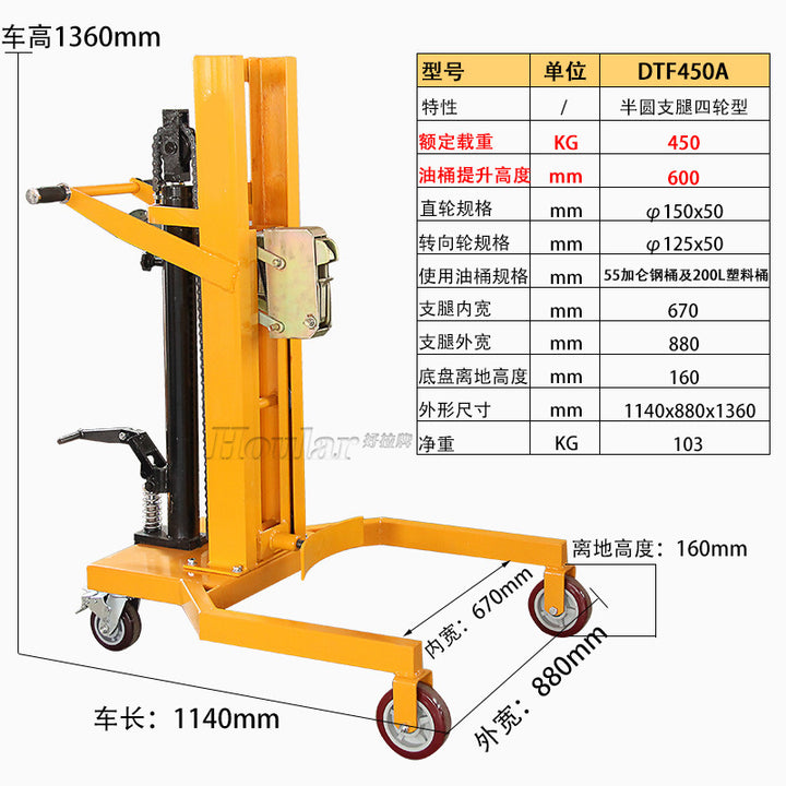 Spot 450kg foot-operated oil drum truck DTF450B hydraulic oil drum trolley steel oil drum truck