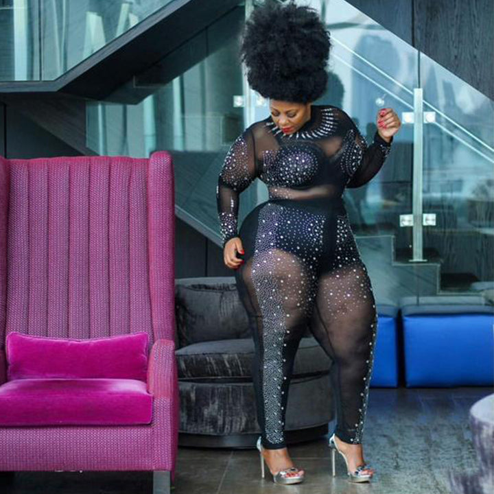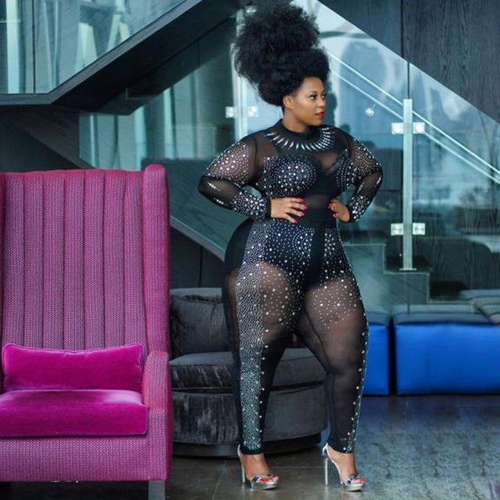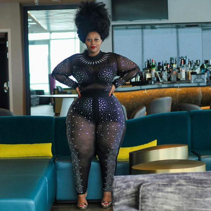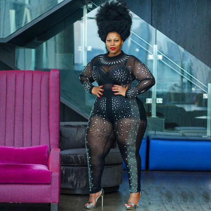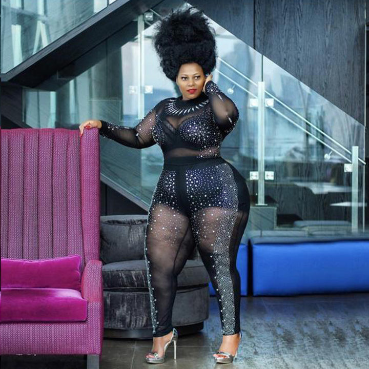 Spot! BK2243 Hot Sale European and American Sexy Mesh Hot Diamond, Slim Jumpsuit