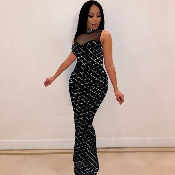 Spot! BK2323 Hot Sale European and American Sexy, Mesh Hot Diamond, Dress, Nightclub Dress