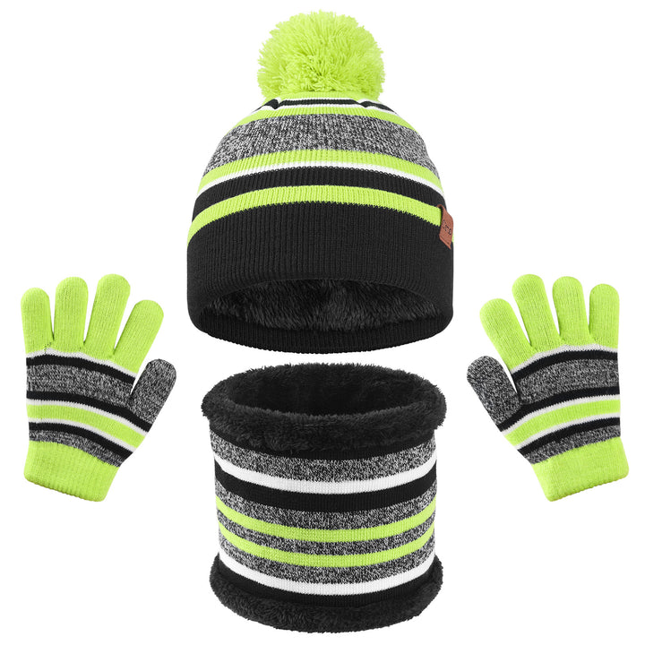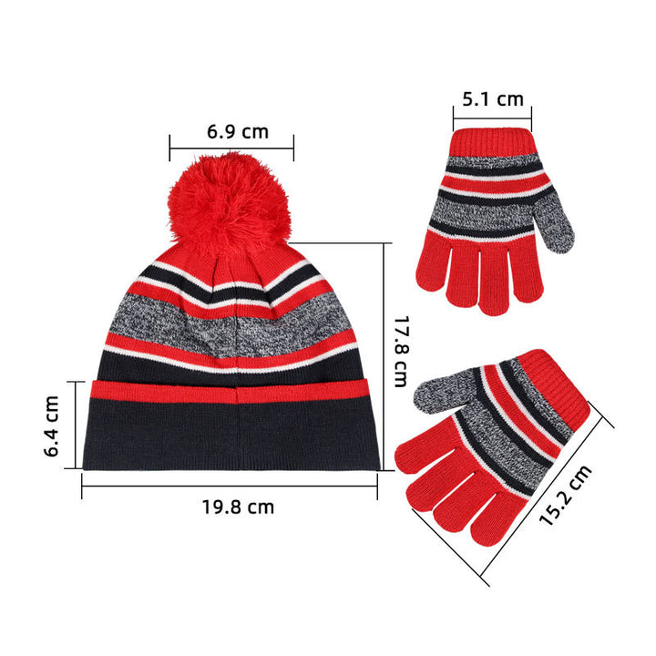 Spot European and American children's hairball hat gloves two-piece set Christmas gift winter velvet warm knitted hat