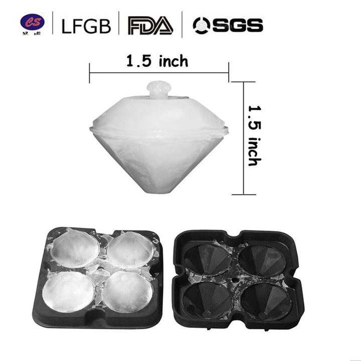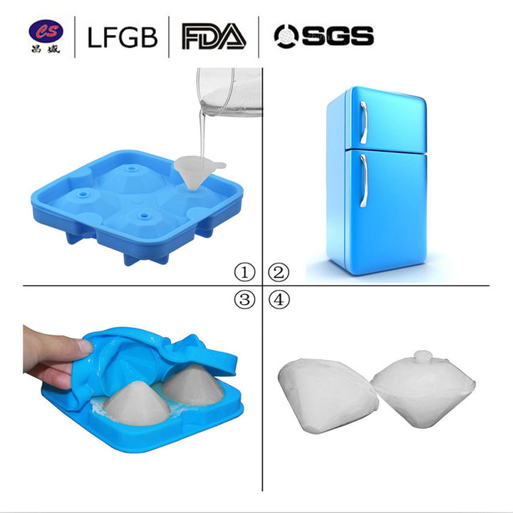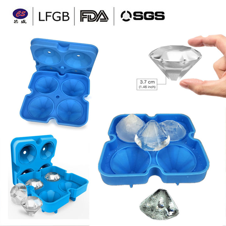 Spot four even silicone diamond ice grid whiskey ice cube ice making mold bartending ice maker with lid mold ice grid