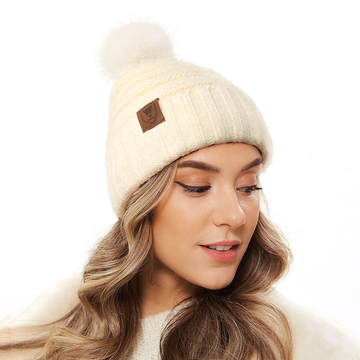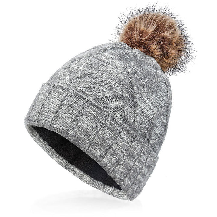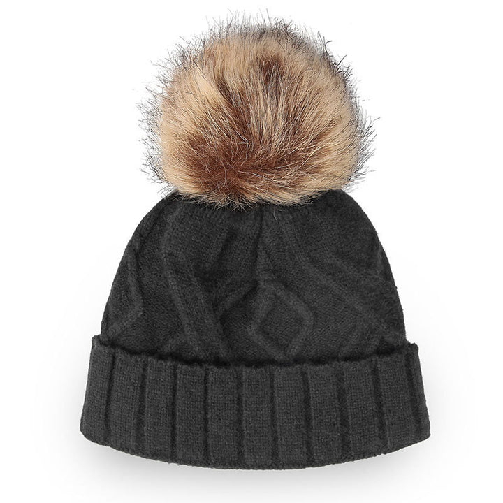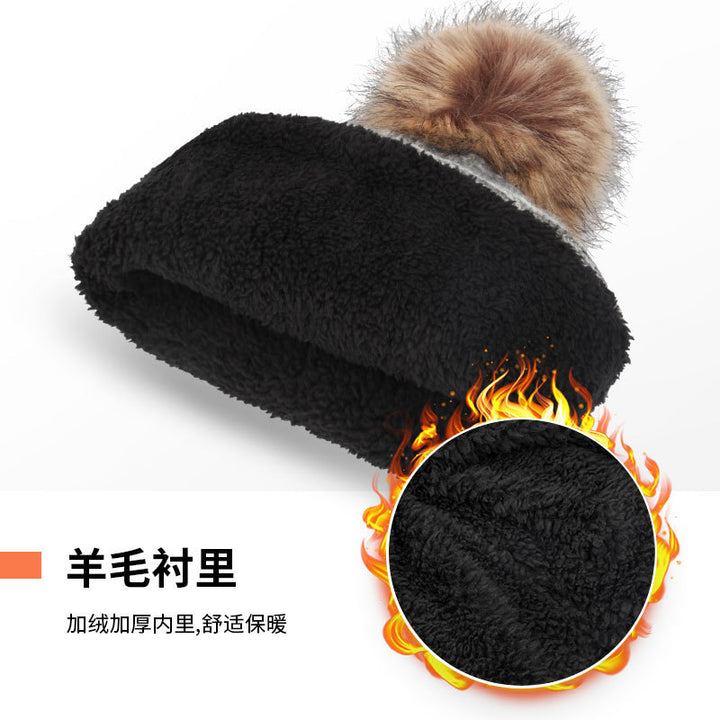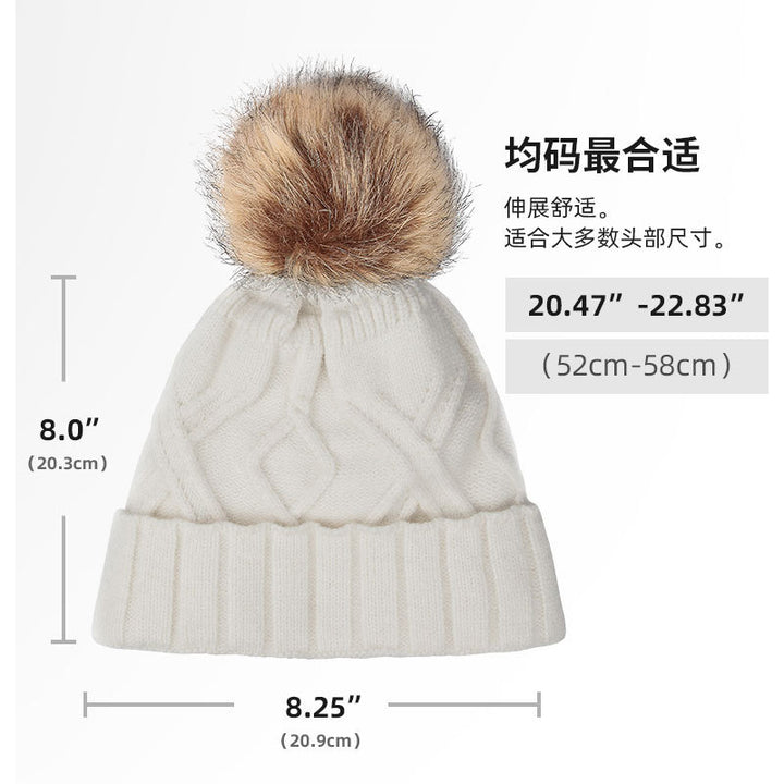 Spot hat autumn and winter female cute hairball warm solid color wool hat Korean version female jacquard fashion versatile knitted hat