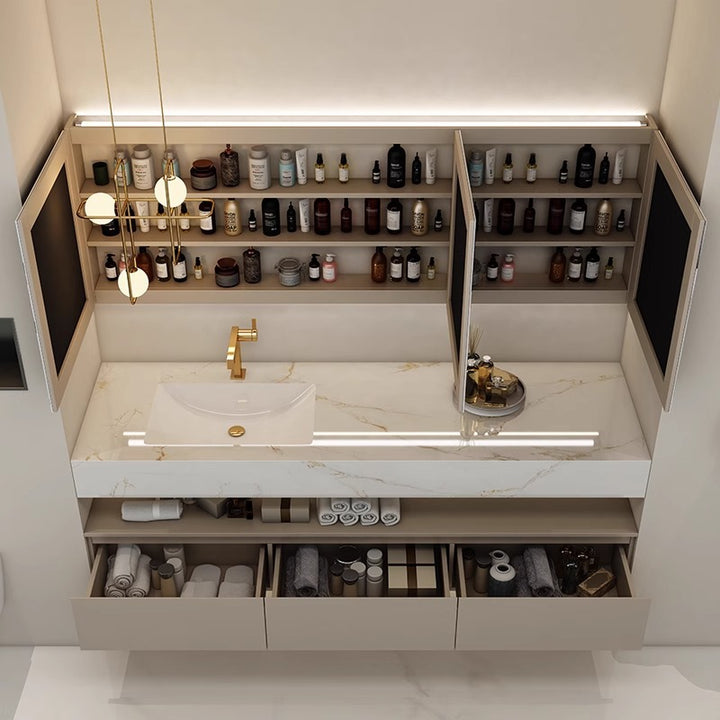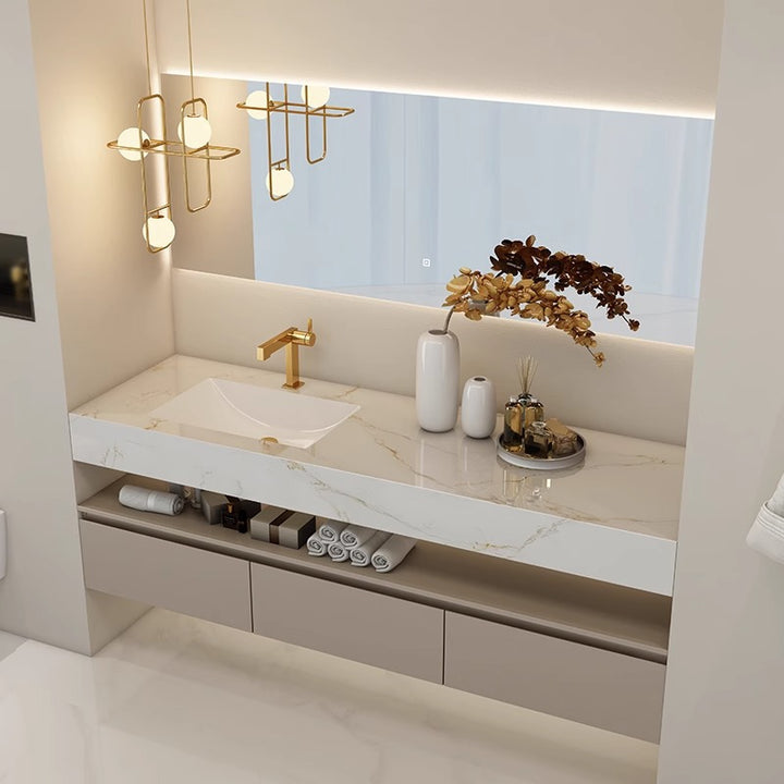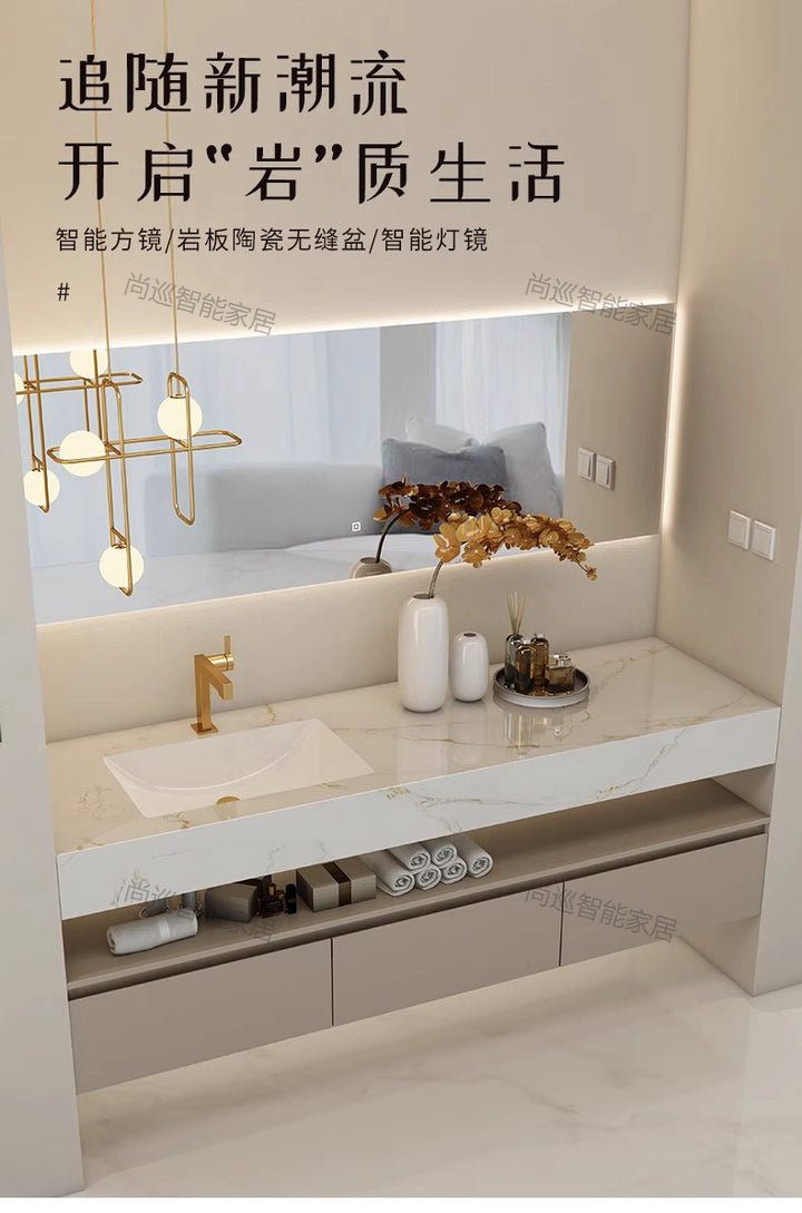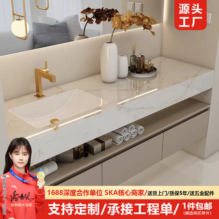 [Spot] Hotel wind rock slab seamless ceramic basin, bathroom cabinet combination, bathroom, h...