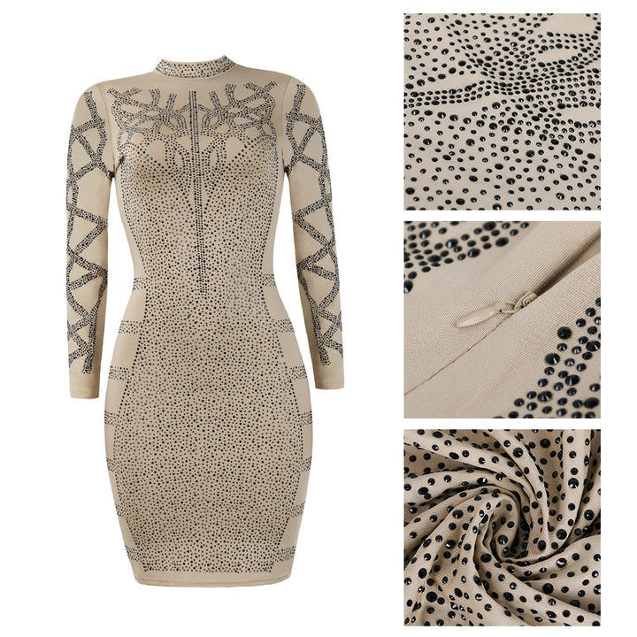 Spot! K8496 European and American sexy, hot diamond long-sleeved two-color dress nightclub
