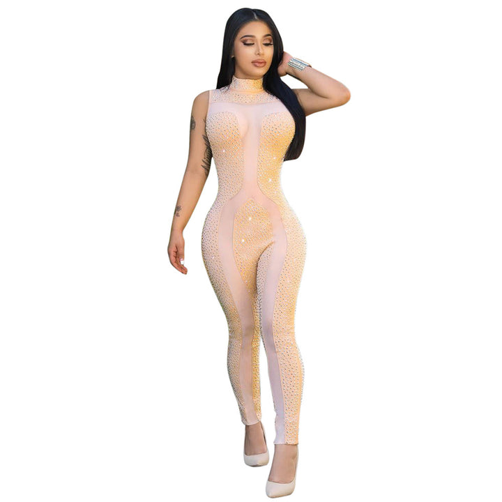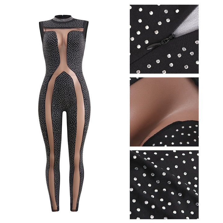 Spot! K8715 hot-selling European and American sexy perspective diamond-encrusted slim one-piece nightclub clothes two colors