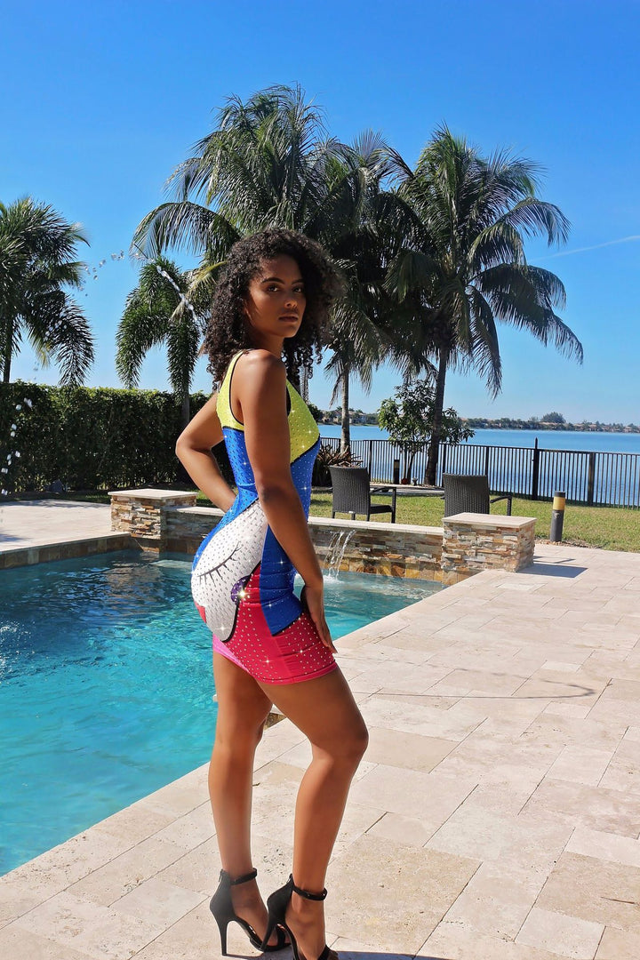 Spot! K8720 sexy European and American hot diamond beautiful woman pattern, slim hip club skirt