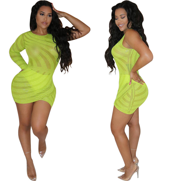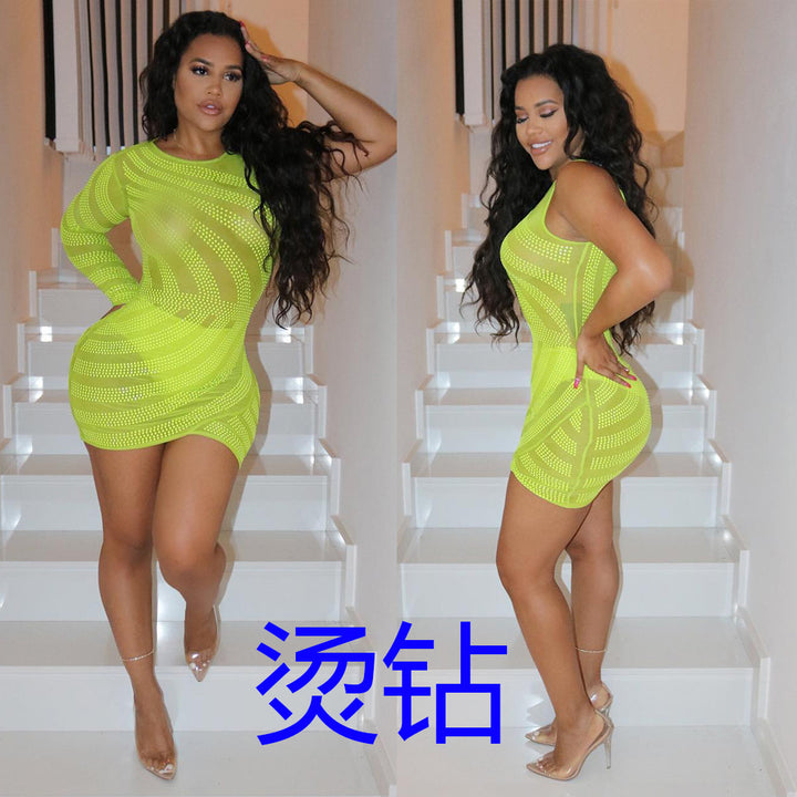 Spot! K8840 sexy crew neck, hot diamond perspective long short sleeves, dress, nightclub clothes