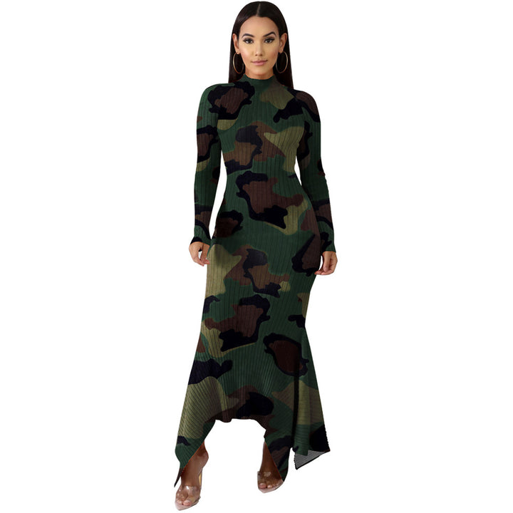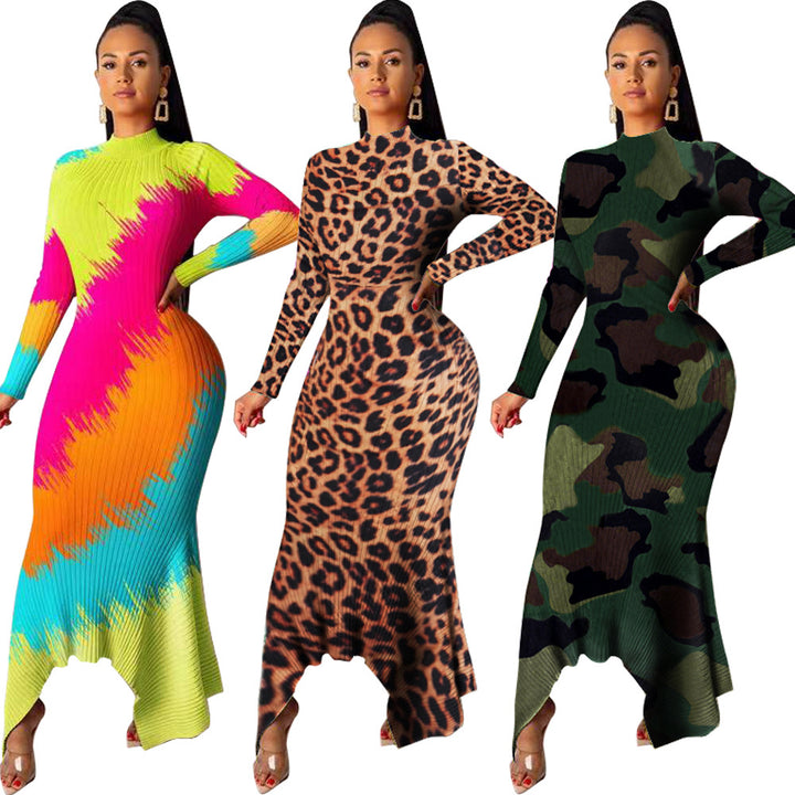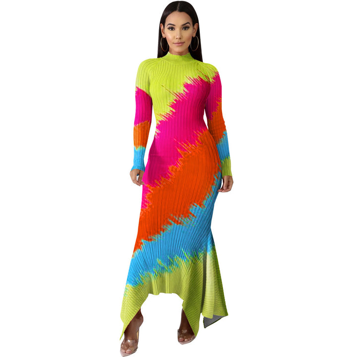 Spot! K8862 turtleneck irregular hem, slim-fitting long sleeves, dress nightclub clothes