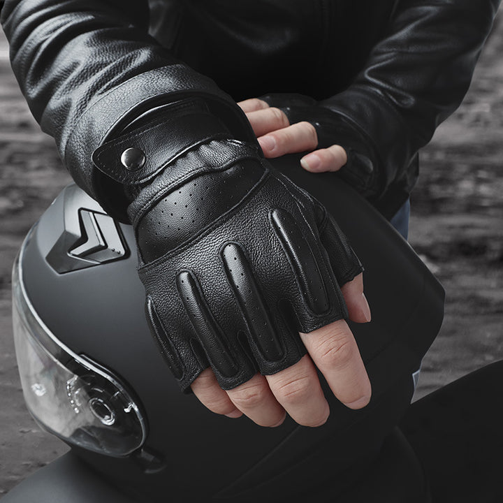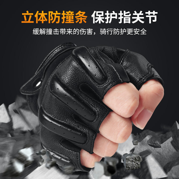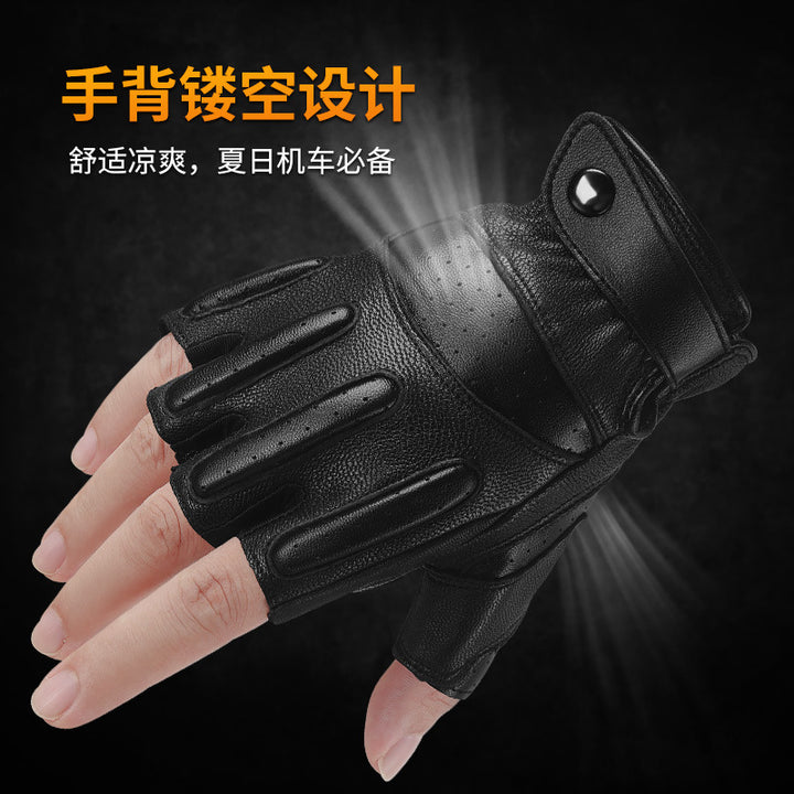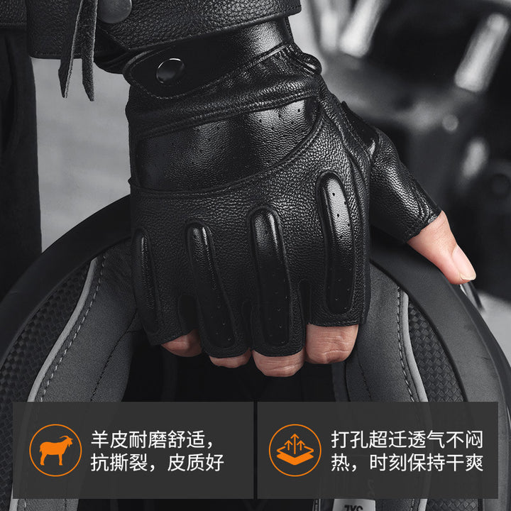 Spot sheepskin motorcycle gloves breathable and non-slip summer men's leather half-finger spo...