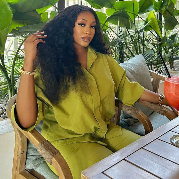 Spot summer women's clothing new African large size loose European and American cardigan trousers two-piece set women