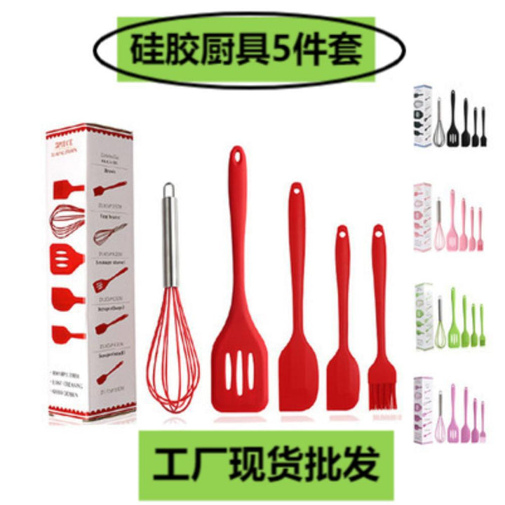 Spot wholesale high temperature resistant silicone baking 5-piece set scraper oil brush egg beater food grade baking tool set
