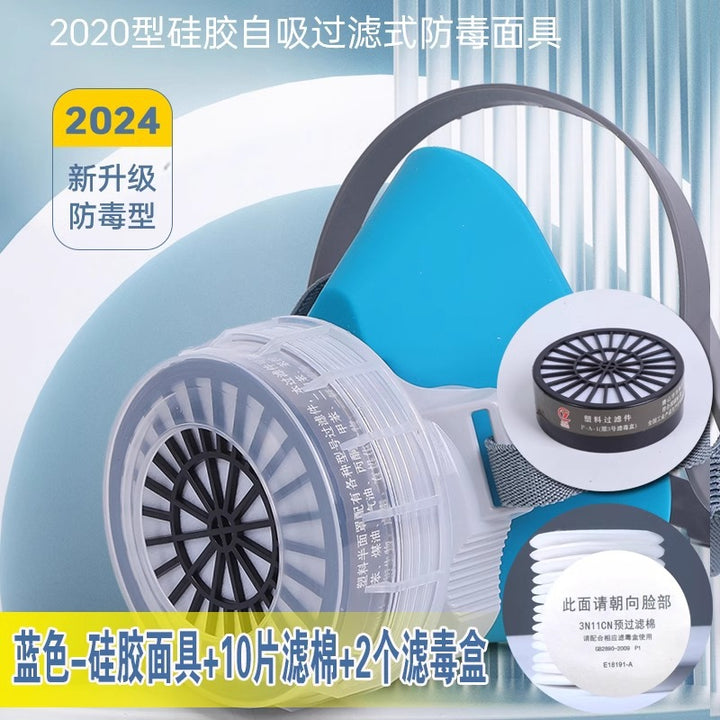 Transparent-Silicone Gas Mask, Transparent-silicone mask + 10 pieces of thickened KN95 filter cotton, Transparent - silicone mask + 2 filter cartridges, Transparent - silicone mask + 10 filter cotton + 2 filter cartridges, 蓝色-硅胶款防毒面具, 蓝色-硅胶面具+10片加厚KN95滤棉, 蓝色-硅胶面具+2个滤毒盒, 蓝色-硅胶面具+10片滤棉+2个滤毒盒, 加厚KN95滤棉50片, 单独滤毒盒1个 |