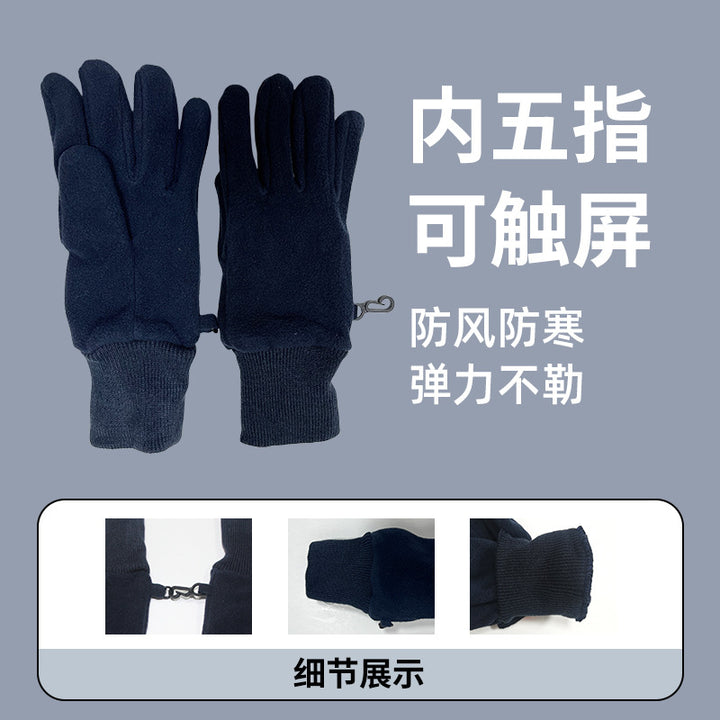 Spring and autumn thin velvet riding gloves, children can touch the screen, split-finger flee...