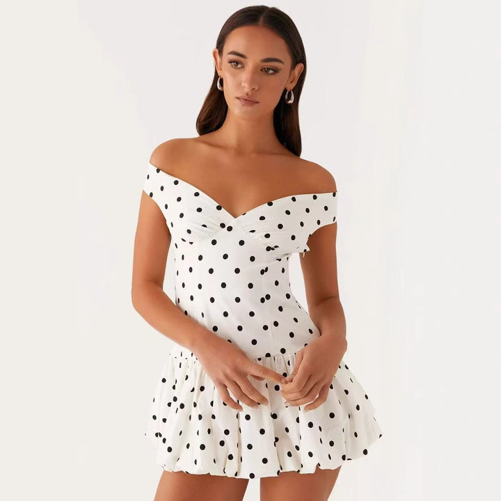 Spring and summer 2025 new sexy off-the-shoulder polka dot printing mini dress short dress