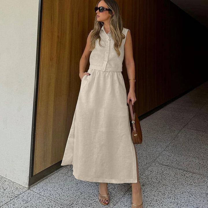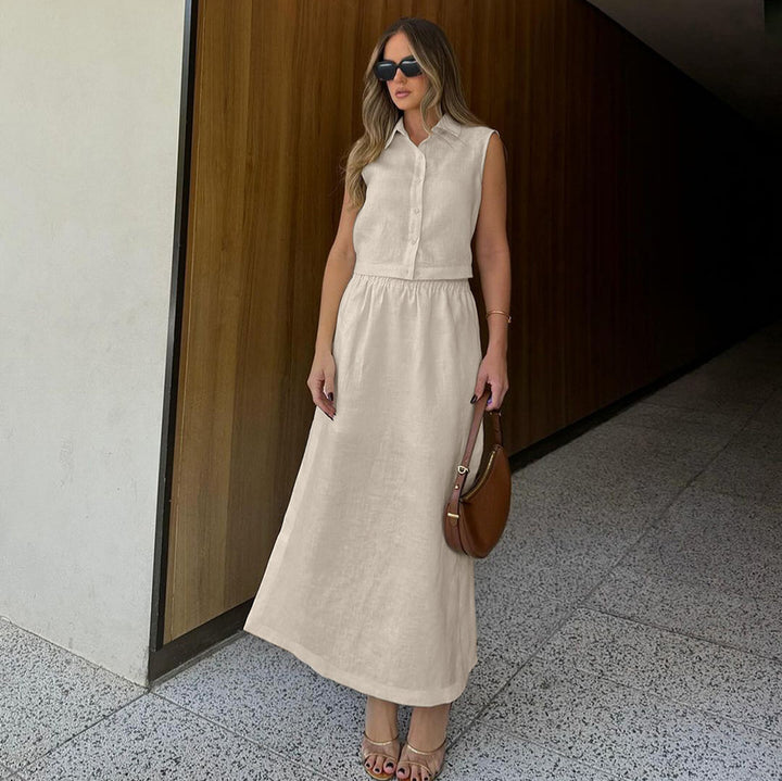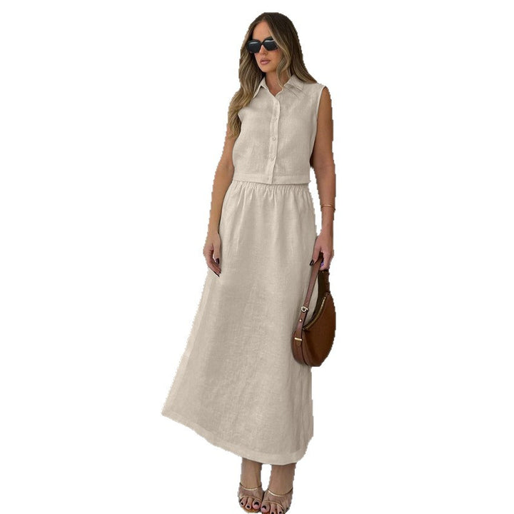 Spring and summer European and American new fashion slim-fitting khaki pure cotton sleeveles...