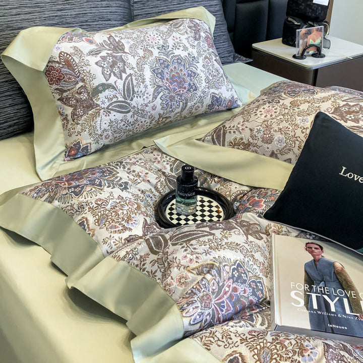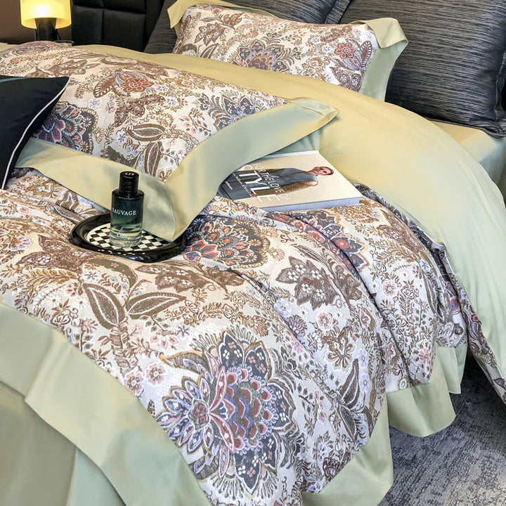 Spring and summer light luxury high-end 100s long-staple cotton printed bed four-piece set pure cotton wide-edge quilt cover cotton bed sheet 4