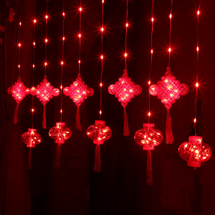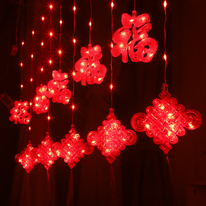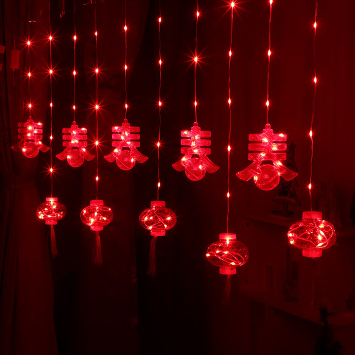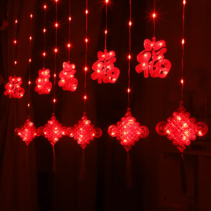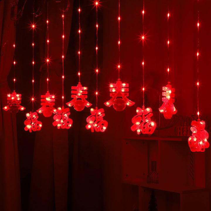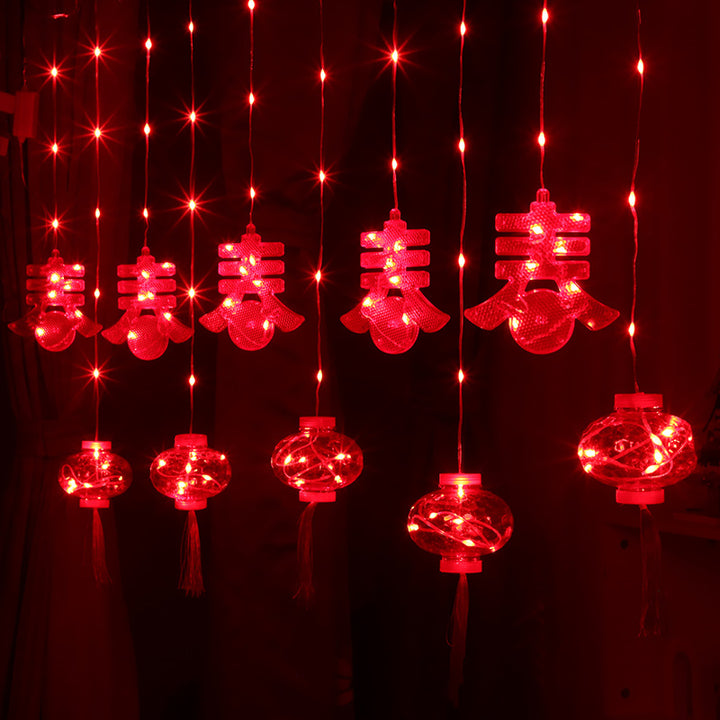 Spring Festival curtain lights Chinese New Year entrance balcony Fu character spring characte...