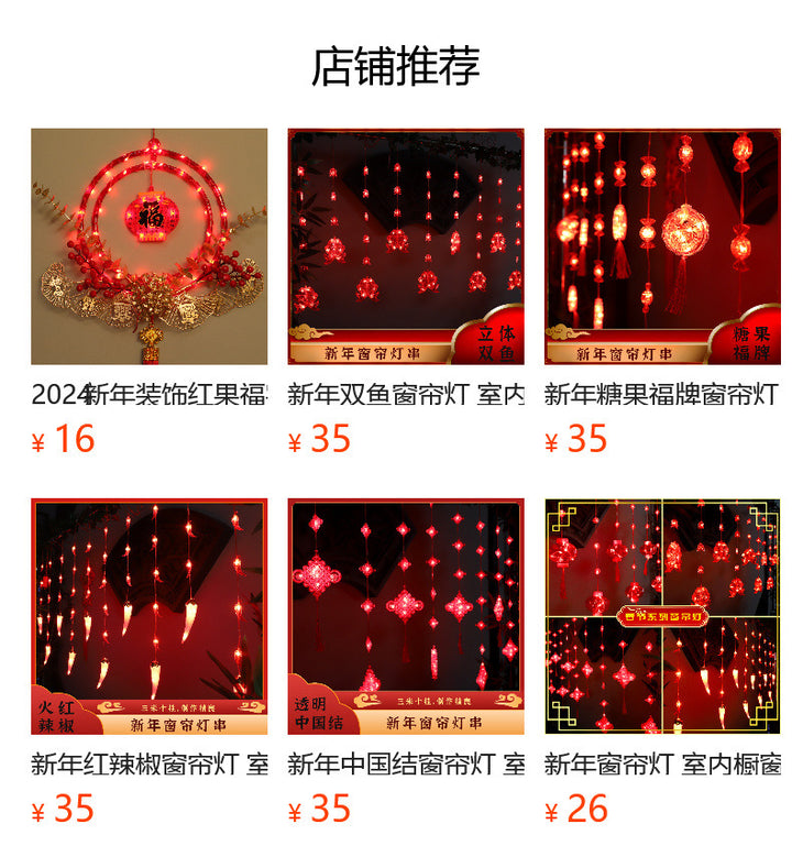 Spring Festival red lanterns LED decorative lights string flashing lights New Year's curtain ...