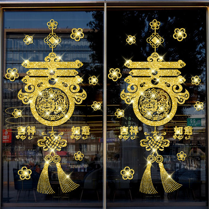Spring Festival window grilles sticker ironing powder New Year's window glass decoration sticker store shopping mall door sticker New Year's powder...