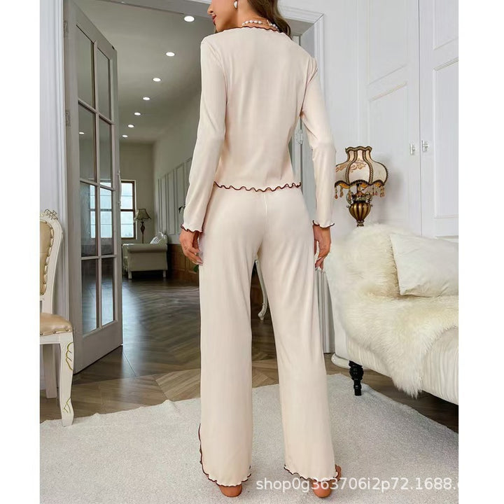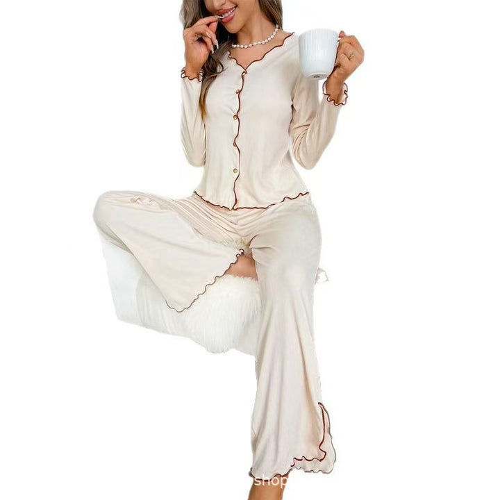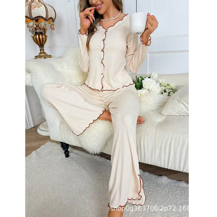 Spring new lapel cardigan pajamas women's suit European and American high-end splicing horn s...
