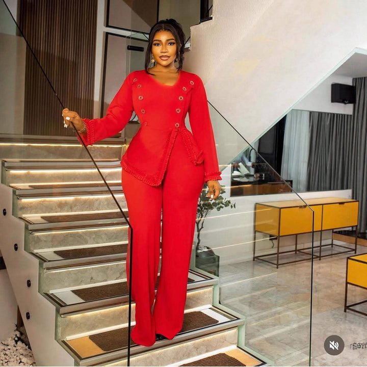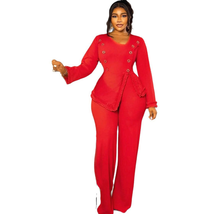 Square Neck Button Irregular Slim Fit Wide Leg Jumpsuit, Stylish Commuter Elegant Party Dress Jumpsuits