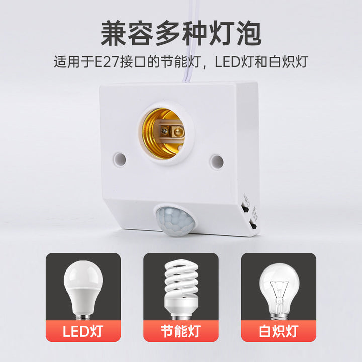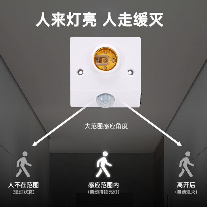 Square surface mounted screw infrared sensor lamp holder wholesale household corridor lamp holder E27 screw human body sensor lamp holder