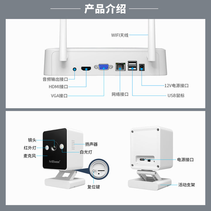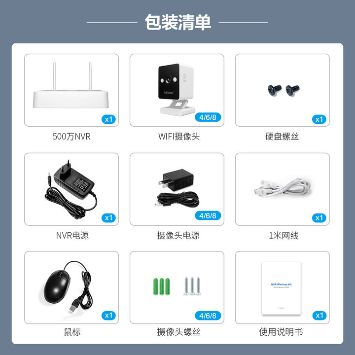 US standard power supply 4-way set, European power supply 4-way set, + WiFi set camera |