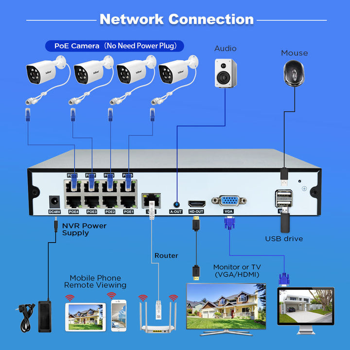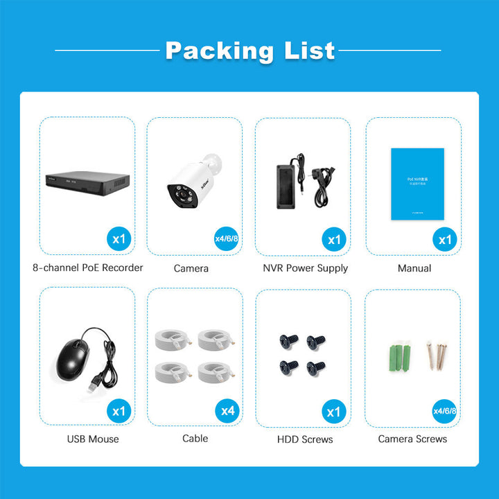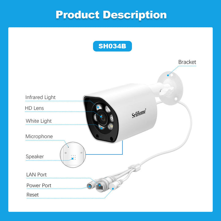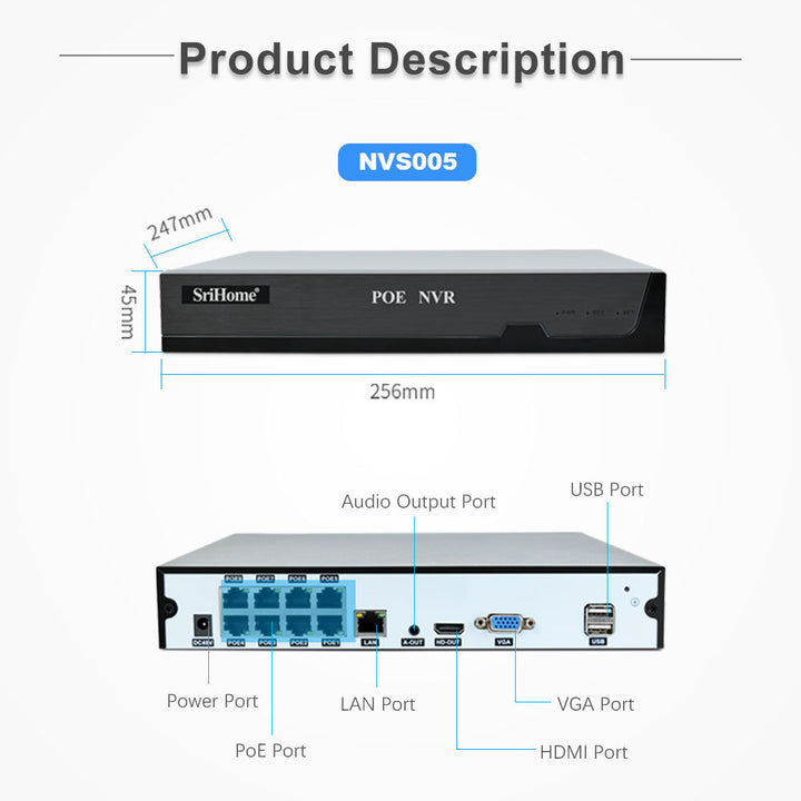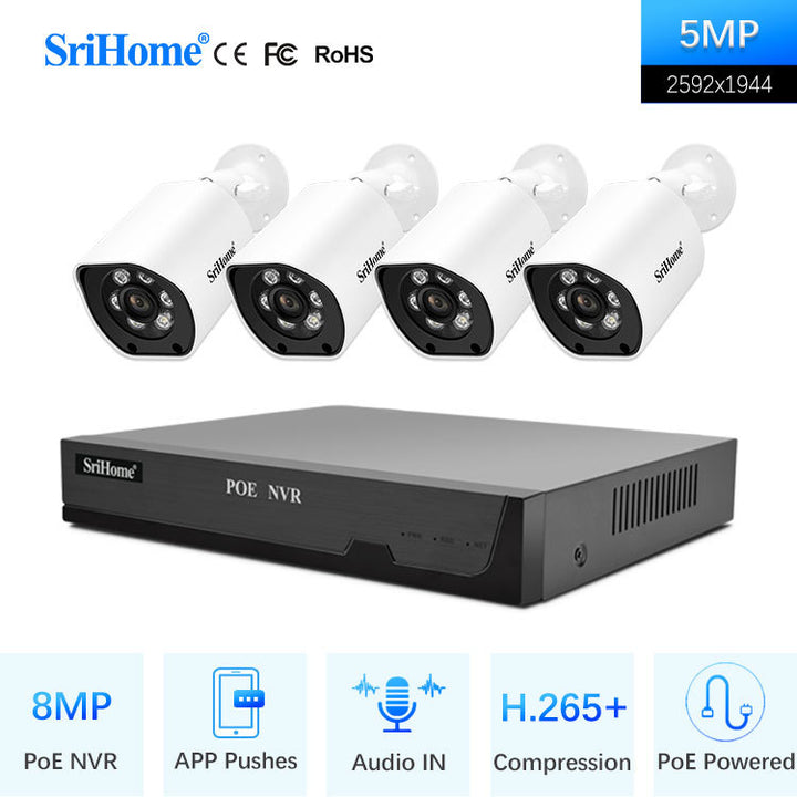 Srihome4/8路POE监控套装 摄像头8CH 5MP NVR Kit CCTV Se...
