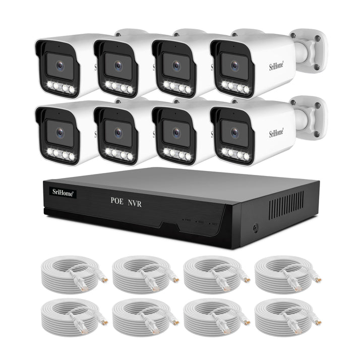 Srihome4/8 way surveillance set 500W full color night vision POE camera 4k high definition ca...