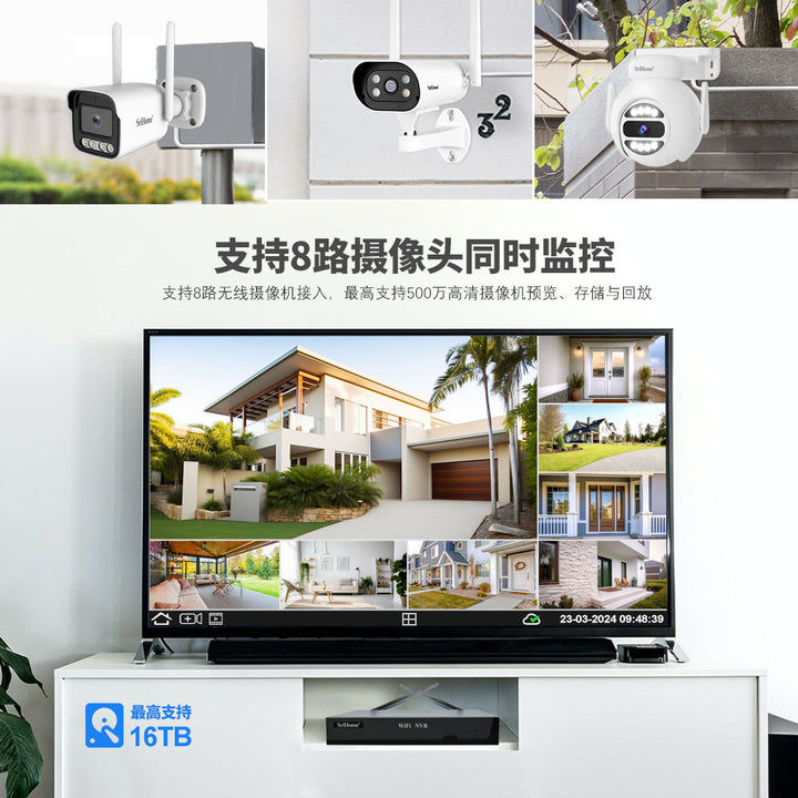 SriHome8路5MP无线监控套装语音对讲全彩夜视CCTV录像机NVR摄像头
