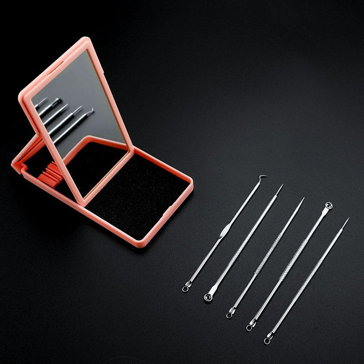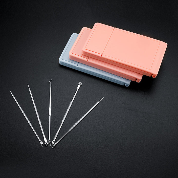 Stainless steel beauty needle with mirror set, blackhead removal and acne cleaning special beauty tool, acne needle 5-piece set