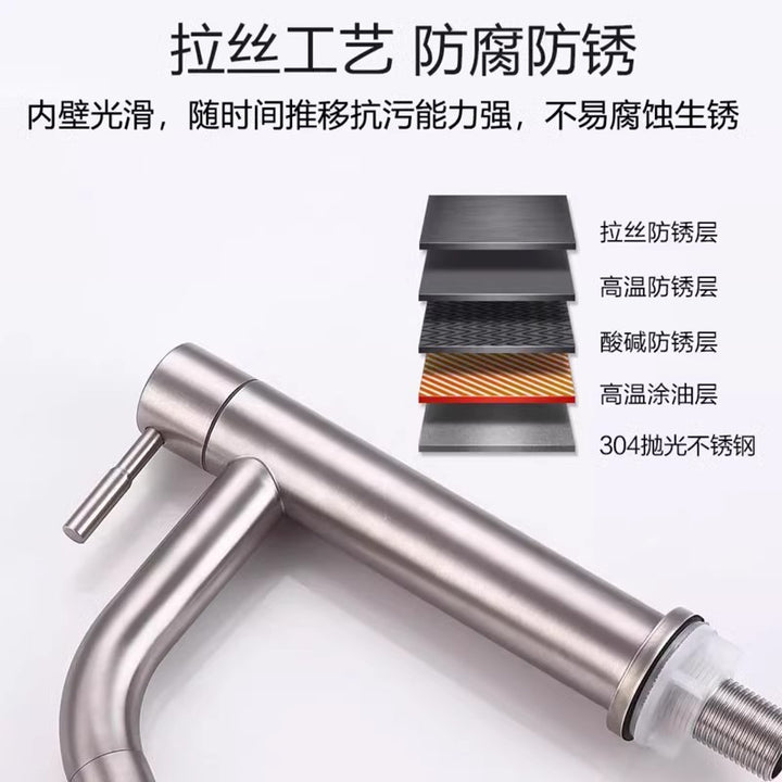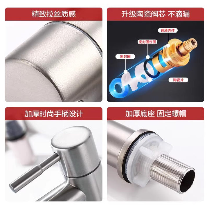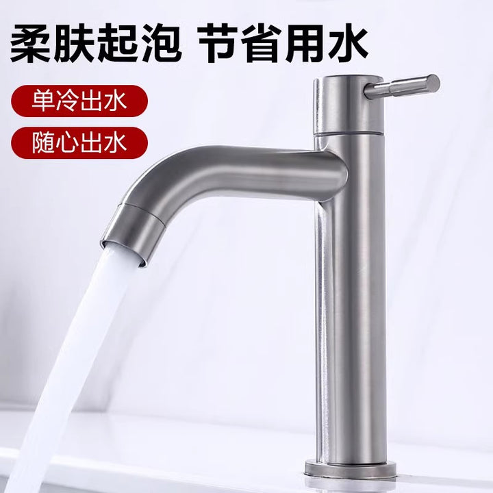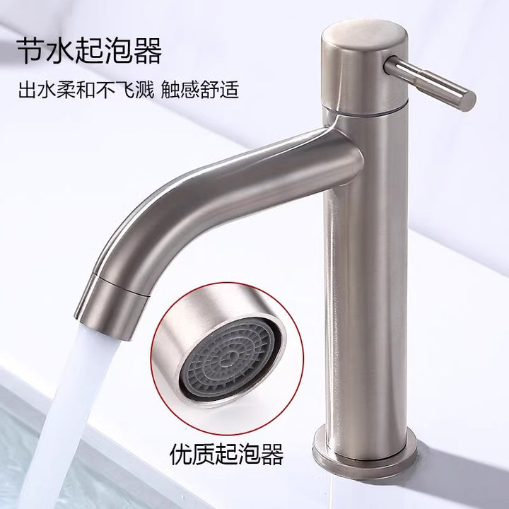 Stainless steel brushed faucet single cold face wash hand basin hand basin bathroom washstand hot and cold faucet