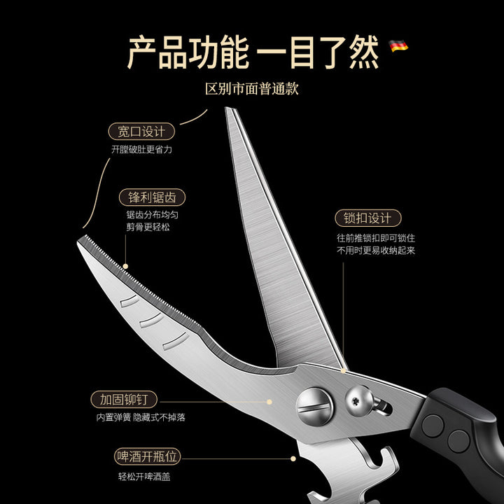 Stainless steel chicken bone scissors outdoor portable food barbecue scissors kitchen multi-functional scissors wholesale