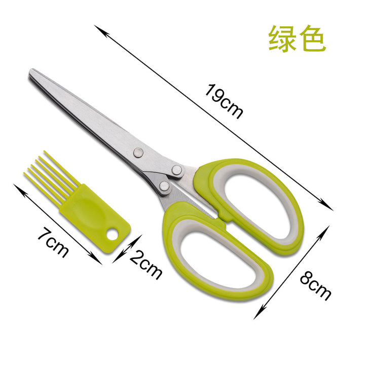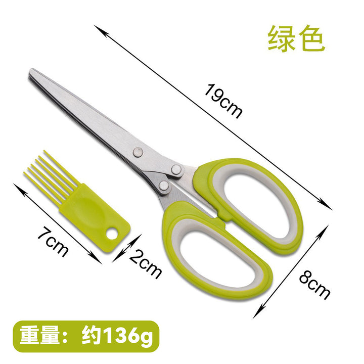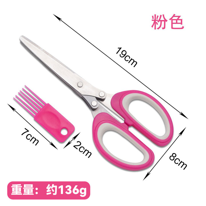 Stainless steel five-layer scallion scissors seaweed baby complementary food crushed food scissors strong kitchen multi-functional scissors manufac...