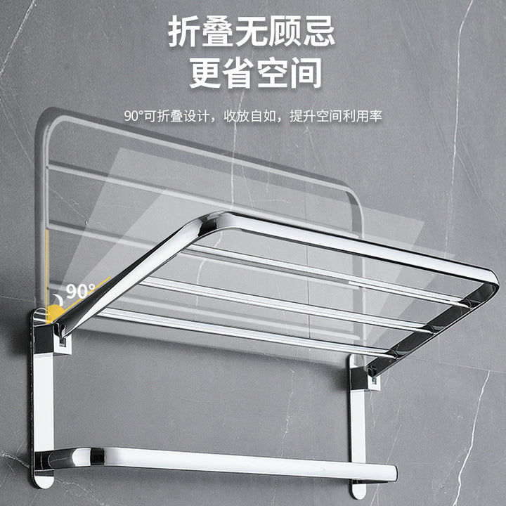 Stainless steel folding bath towel rack non-punching bathroom wall-mounted toilet toilet stor...