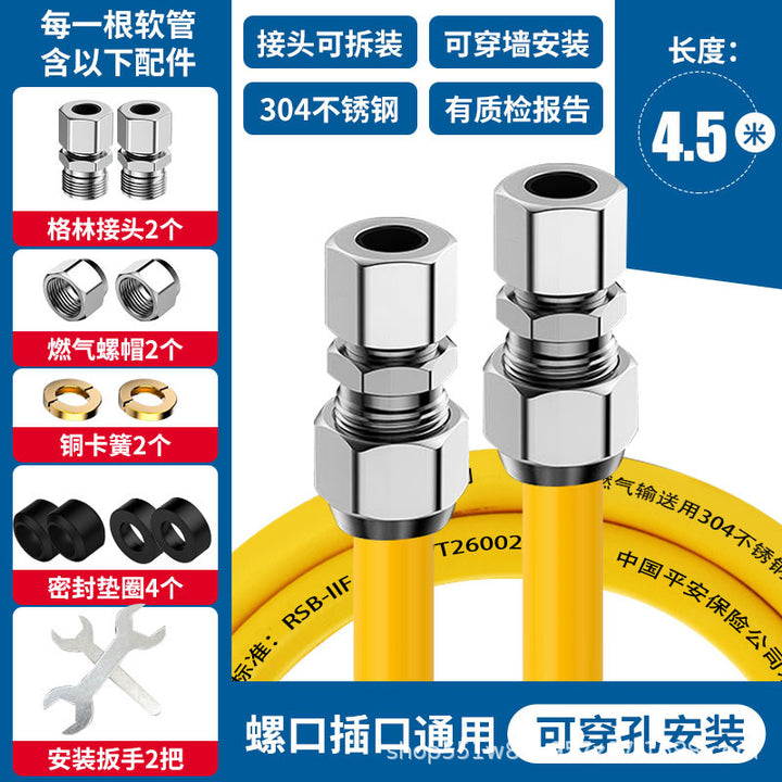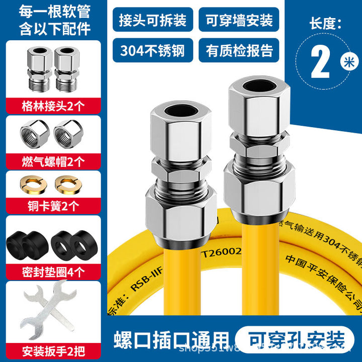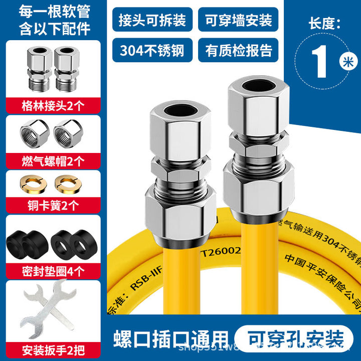 Stainless steel gas pipe 304 corrugated pipe, household natural gas stove connecting pipe Met...