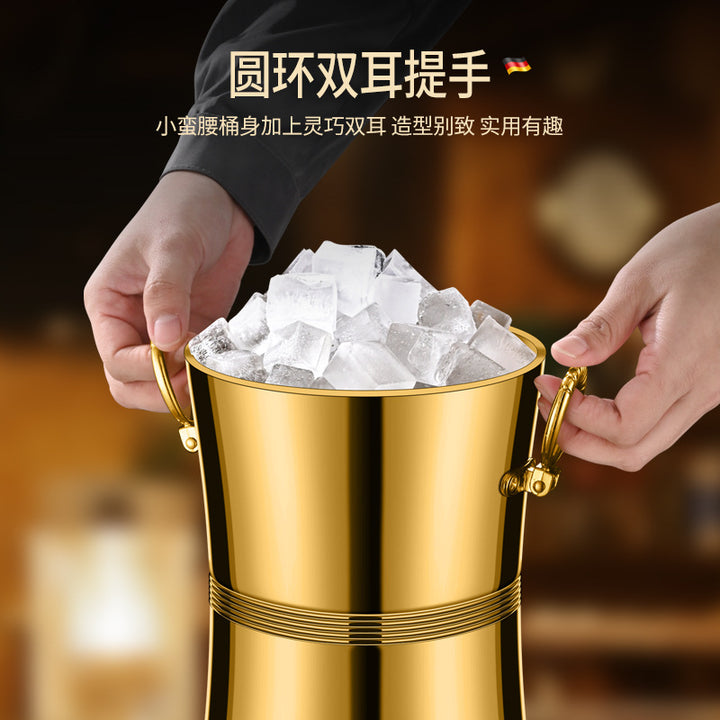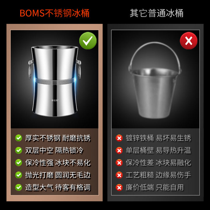 Stainless steel handle ice bucket household double-layer thermal insulation and cold preservation high-value KTV champagne red wine beer ice cubes