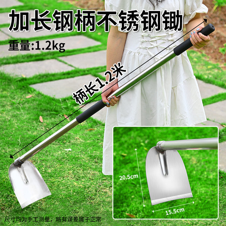 Stainless steel hoe household vegetable planting, weeding, digging soil, wasteland clearing, agricultural tool manufacturer, long handle hoe manufa...
