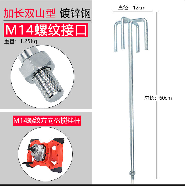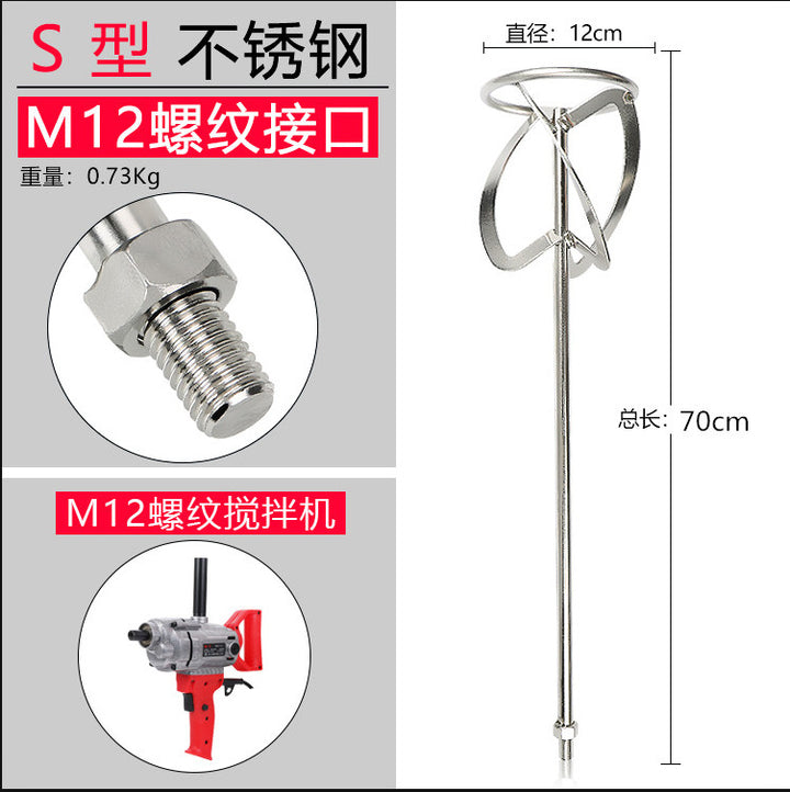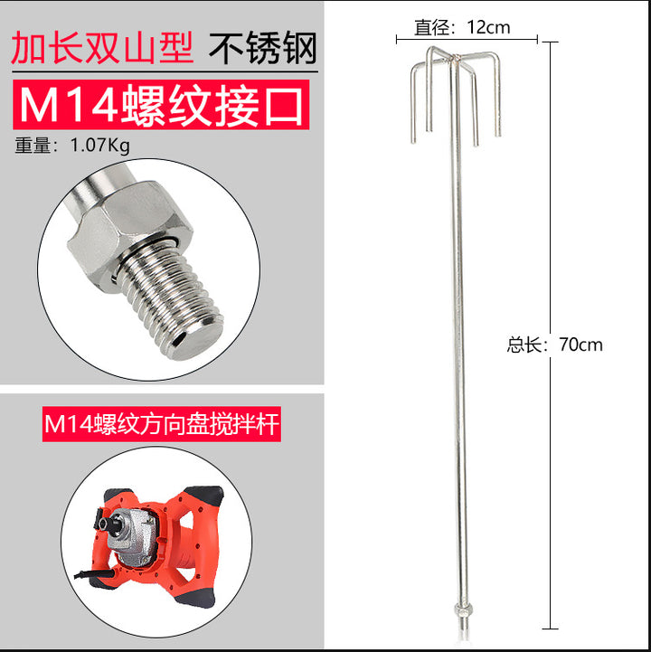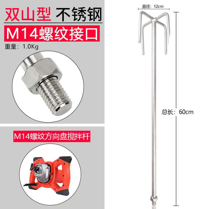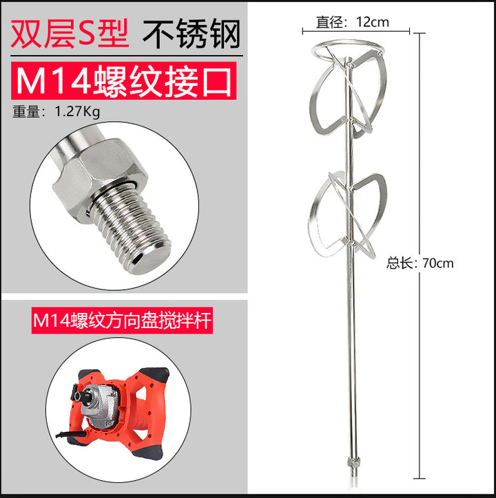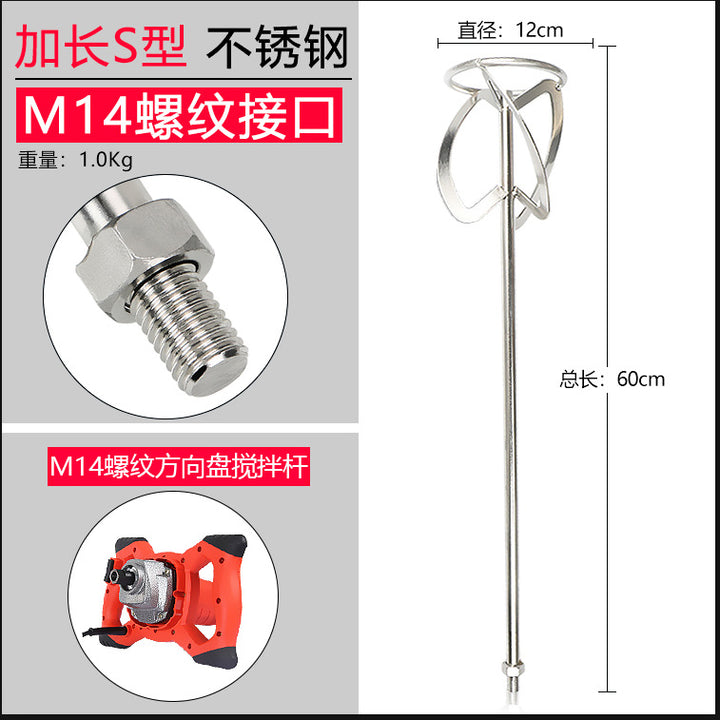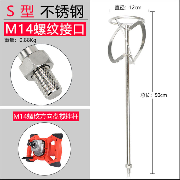 Stainless steel mixing rod cement ash mixing putty powder paint M14 spiral S type steering wheel