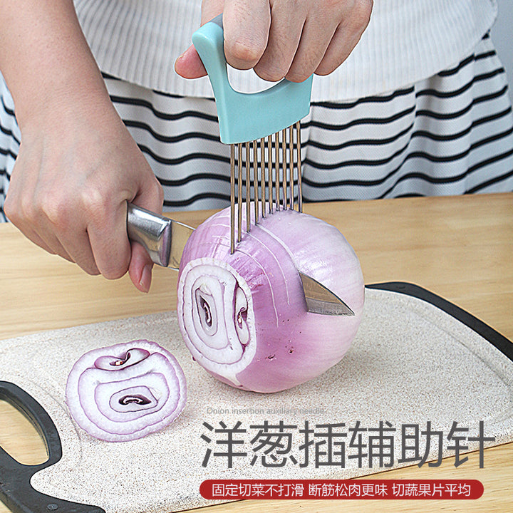 Stainless Steel Multi-Purpose Onion Plug, Onion Holder Onion Cut, Onion Needle Loose Meat Needle Steak Needle Amazon