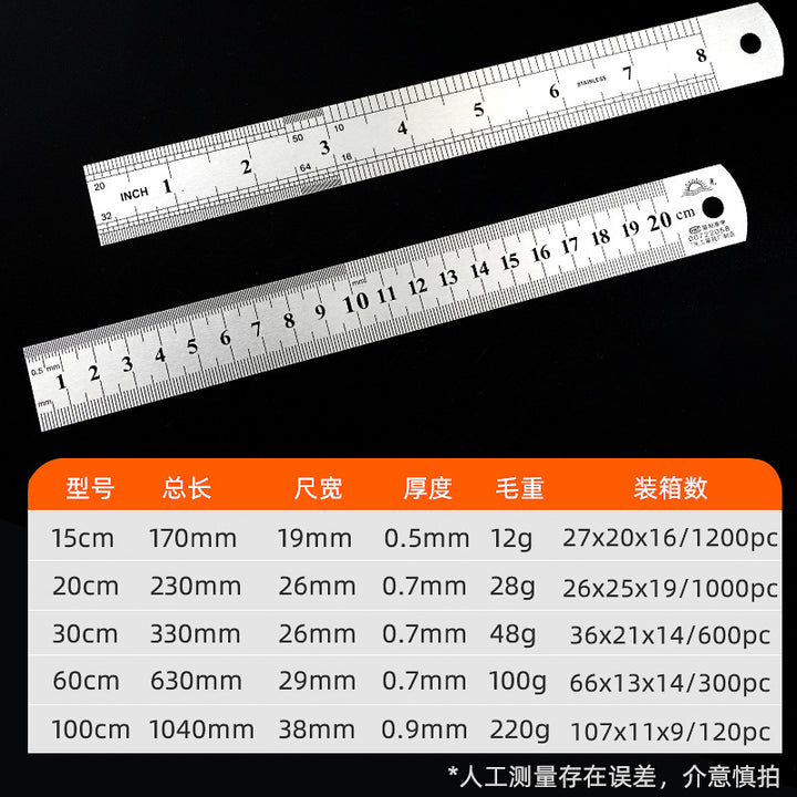 Stainless steel ruler ruler thickened steel ruler 1 meter 1.5/2 meter 15/20/30/50cm 1 meter steel plate ruler wholesale