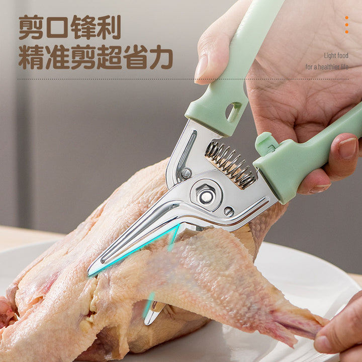 Stainless steel scissors household scissors powerful kitchen scissors chicken bone scissors multi-functional fish killing large scissors cut meat f...
