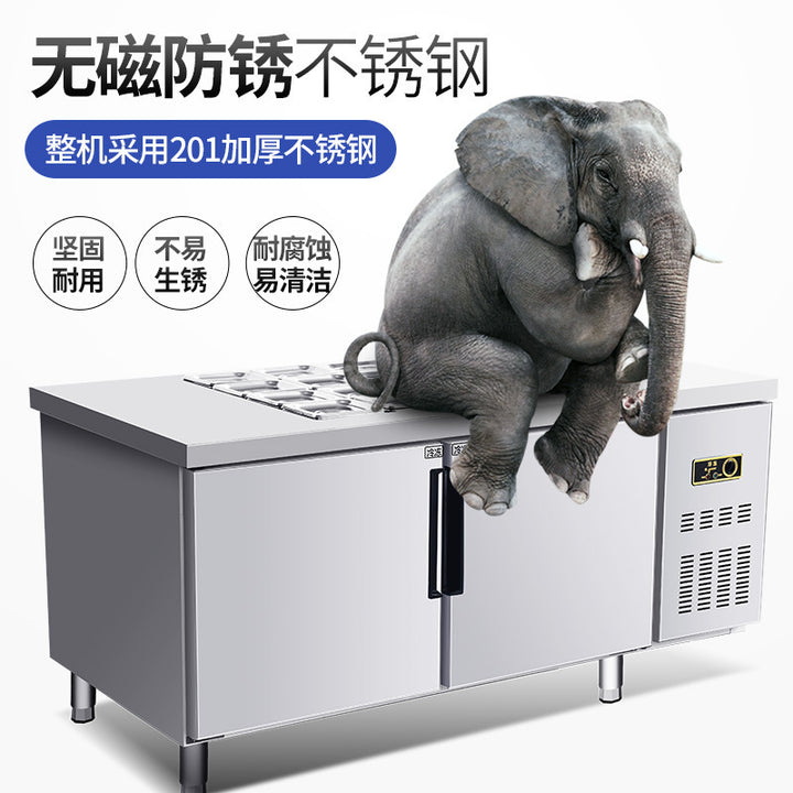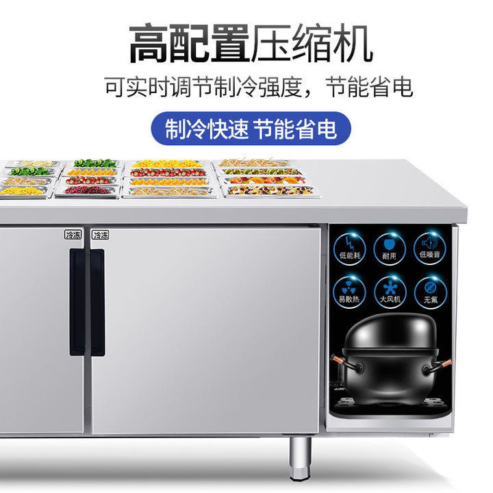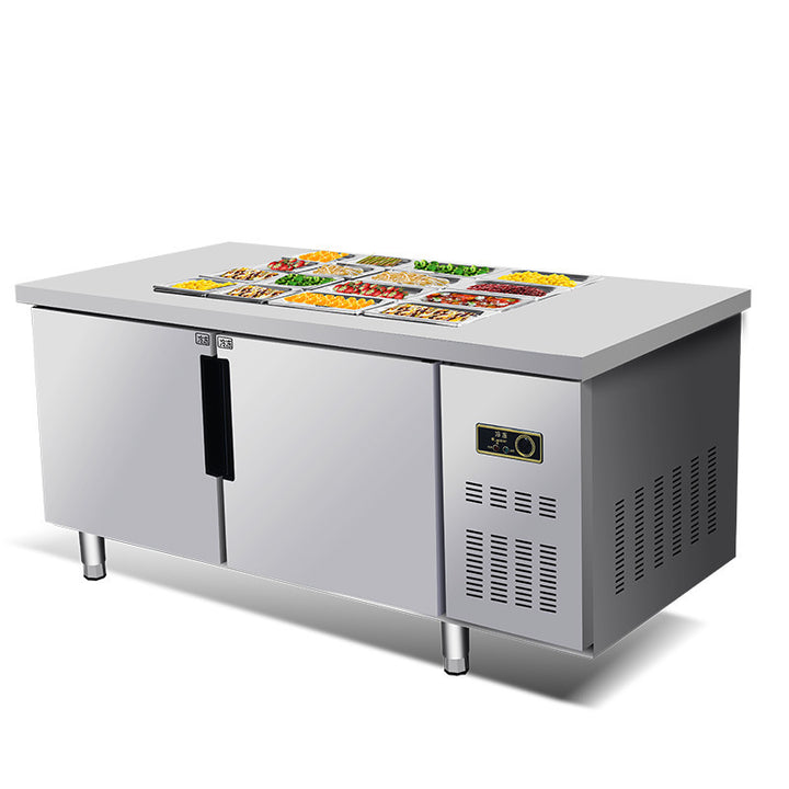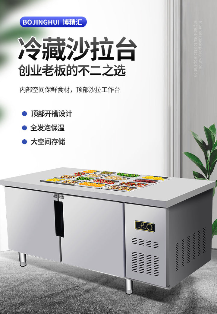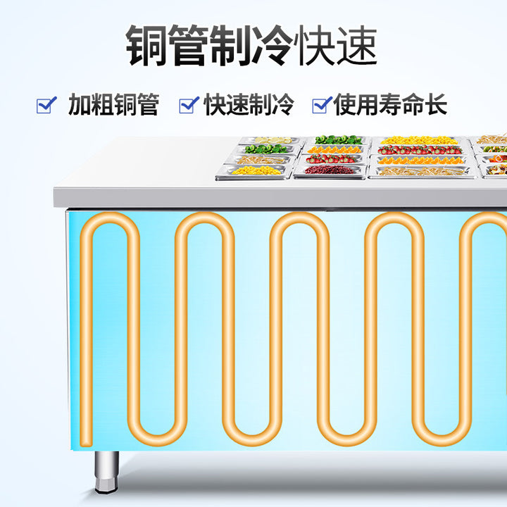 Stainless steel slotted salad table, refrigerated pizza table, commercial cold vegetable display cabinet, fruit fishing side vegetable cabinet, ref...