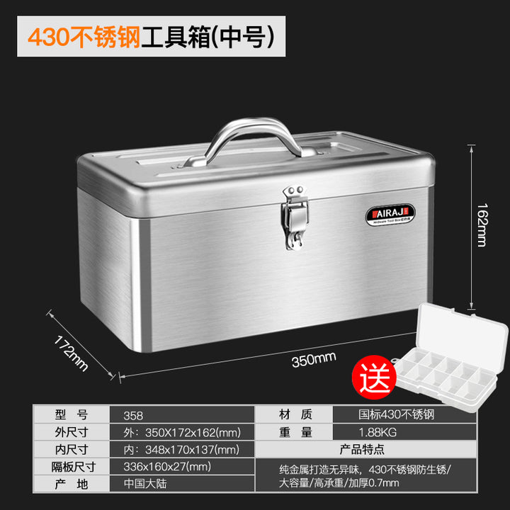 Stainless steel toolbox medium (single buckle) + parts box, Stainless Steel Toolbox Large + Parts Box, Stainless steel toolbox extra large + parts box |