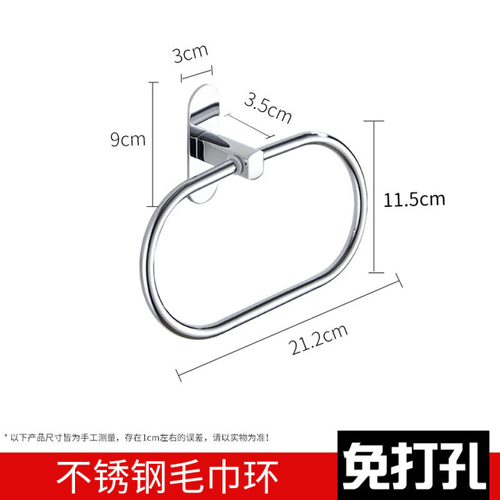 Stainless steel towel ring non-punching toilet bathroom bathroom hardware pendant round hand towel hanging ring towel rack