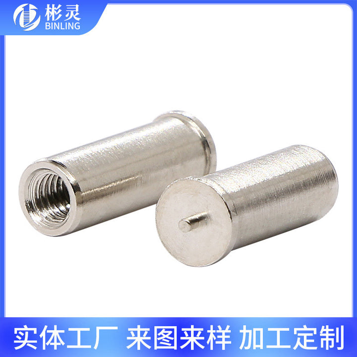 Stainless steel welded nut column internal thread spot welding column PCB spot welding fixed column with welding pin copper nut column customization