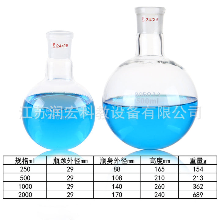 Mark round bottom flask 50ml (19 #mouth), Standard mouth round bottom flask 100ml (19 #mouth), Standard round bottom flask 250ml (19 #mouth), Standard mouth round bottom flask 500ml (19 #mouth), Mark round bottom flask 50ml (24 #mouth), Standard mouth round bottom flask 100ml (24 #mouth), Standard round bottom flask 250ml (24 #mouth), Standard mouth round bottom flask 500ml (24 #mouth), Standard mouth round bottom flask 1000ml (24 #mouth), Standard mouth round bottom flask 2000ml (24 #mouth), Standard mouth round bottom flask 2000ml (29 #mouth), Label mouth flat bottom flask 50ml (19 #mouth), Standard mouth flat bottom flask 100ml (19 #mouth), Standard mouth flat bottom flask 250ml (19 #mouth), Standard mouth flat bottom flask 500ml (19 #mouth), Label mouth flat bottom flask 50ml (24 #mouth), 标口平底烧瓶100ml(24#口), 标口平底烧瓶250ml(24#口), 标口平底烧瓶500ml(24#口), 标口平底烧瓶1000ml(24#口), 标口平底烧瓶2000ml(24#口), 标口平底烧瓶2000ml(29#口) |