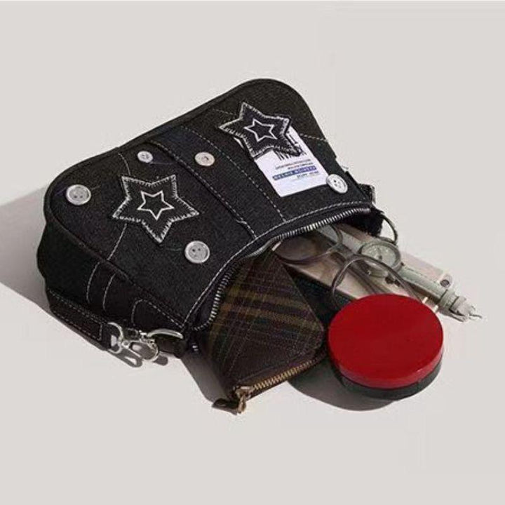 Star denim women's armpit bag new fashion trend niche crescent bag canvas handbag chain shoulder bag