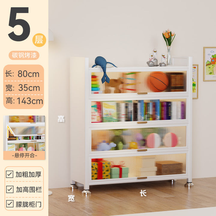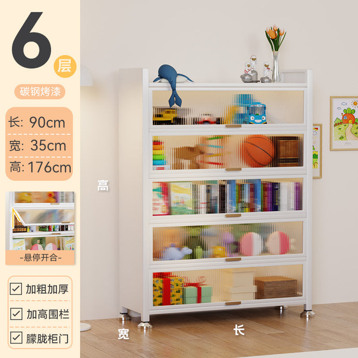 Steel bookcase with door Children's bookshelf Dust-proof locker Household display cabinet Bedroom floor rack Storage cabinet